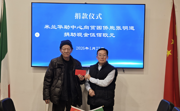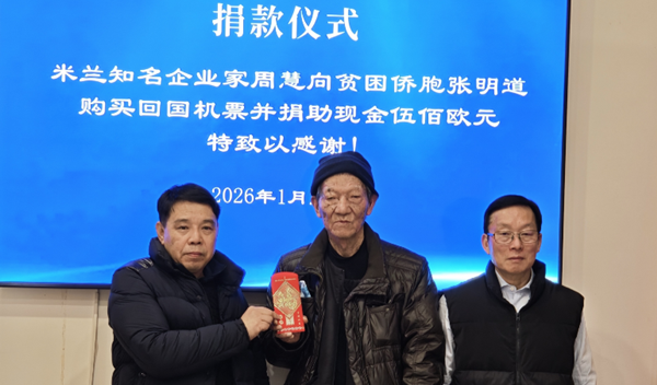 米兰知名企业家周慧先生在得知张明道的处境后,深受触动,主动伸出援手,不仅为老人购买了回国机票,还捐助500欧元以解其燃眉之急。