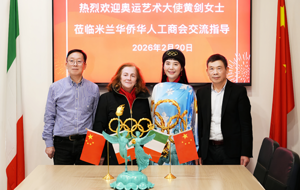 2月20日下午,正值2026米兰—科尔蒂纳丹佩佐冬奥会召开之际,国际奥委会奥运艺术大使、著名雕塑家黄剑女士应邀到访米兰华侨华人工商会。