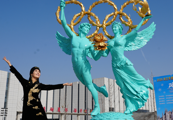 作品高3.8米、重达2吨,气势恢宏,寓意深远,体现了奥林匹克精神与中意文化交融的艺术表达。