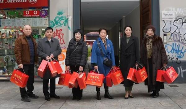 1月31日下午,意大利米兰华人街洋溢着浓浓的年味与乡情,“浙里有爱、侨贺新春”2026暖侨活动米兰站启动仪式在此隆重举行。米兰华侨华人工商会黄国权会长与近20位侨领齐聚一堂,将一份份满载家乡情谊的新春“礼包”亲手送至街区各商铺,传递出来自祖国与浙江省政府的深切关怀与新春祝福。