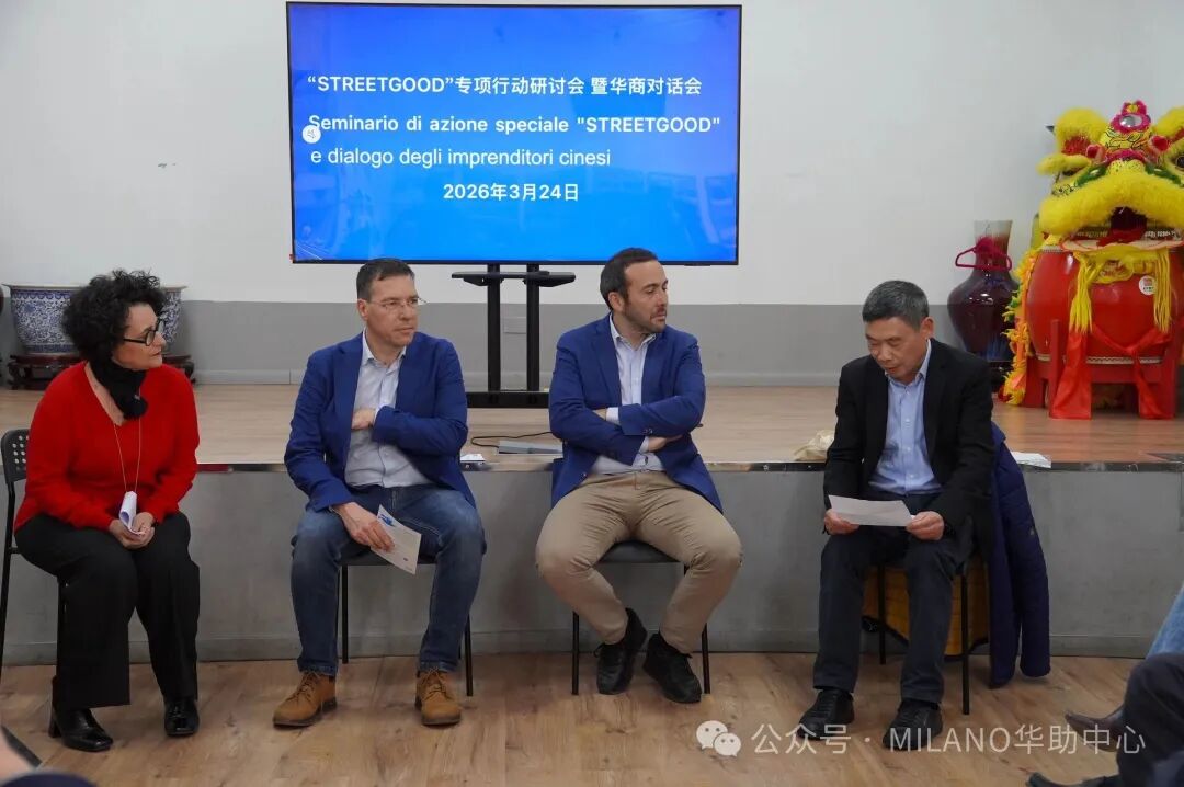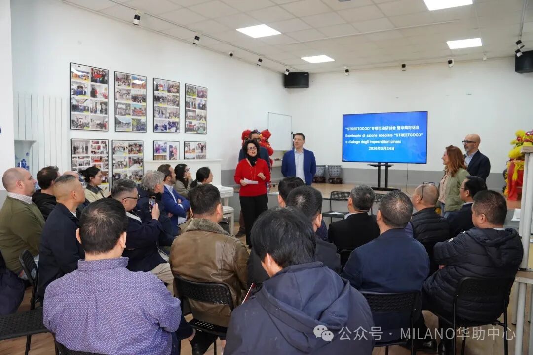 2026年3月24日下午两时许,由米兰商业局、米兰商业联合会、米兰华侨华人工商会、意大利北部华侨华人餐饮业协会联合发起的“STREETGOOD”专项行动研讨会暨华商对话会,在米兰中国文化中心顺利举行。来自米兰市政府相关部门、行业协会及华商代表齐聚一堂,围绕优化华人街营商环境、提升城市形象与推动可持续发展等议题展开深入交流与探讨。